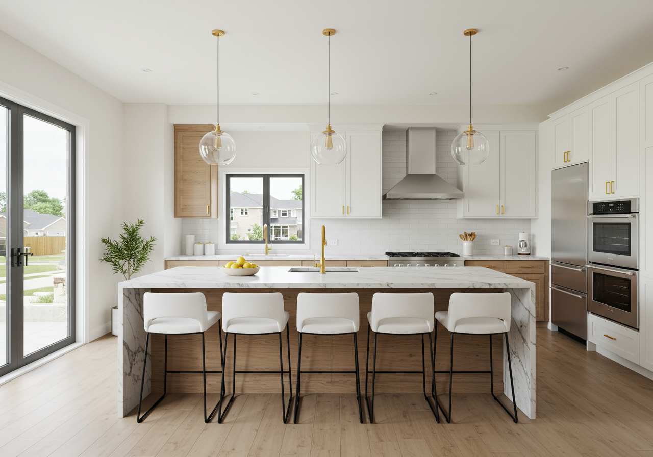 Increase the storage with distinctive features that are practical and instantly upgrade your space for a high-end look. Adding pull-outs for garbage and recycling is a must. Also consider increasing the storage under your island to keep the kitchen tidy. Think about installing open shelving to transform the area so the kitchen’s atmosphere is airy. And don’t forget about custom drawer organizers; these details convey a high-end, luxury feel.